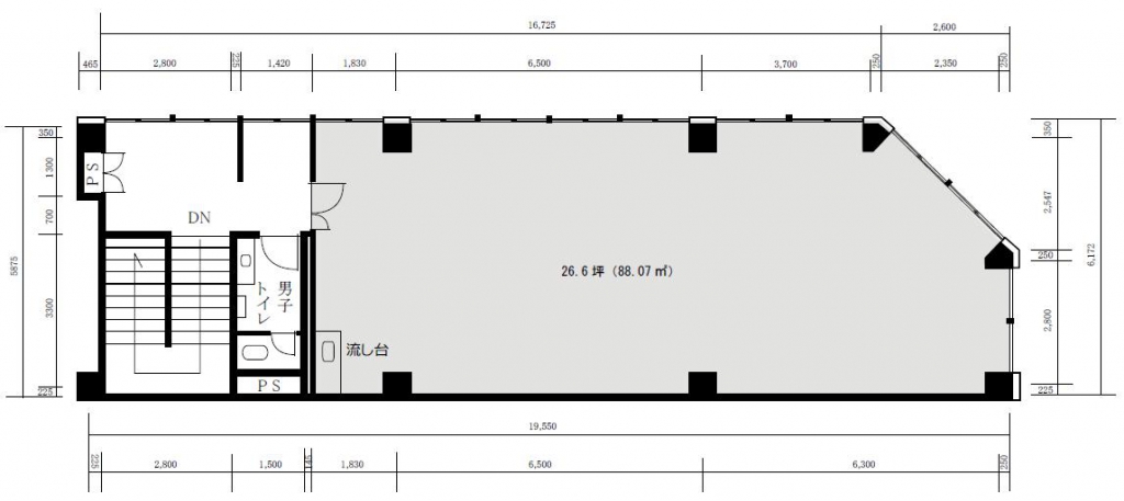 貸室面積 3階 26.6坪(88.07㎡) 天井高 2.49m -
